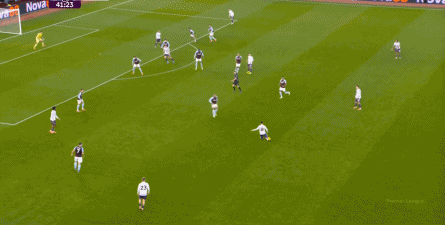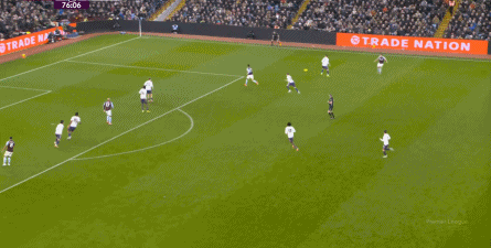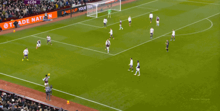一次直接抄截 乌加特,形成了维拉的防守反击: