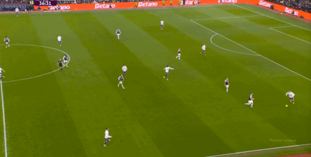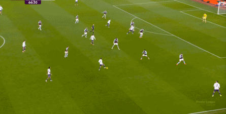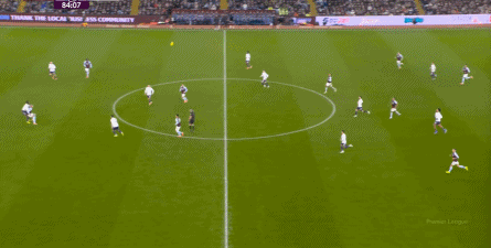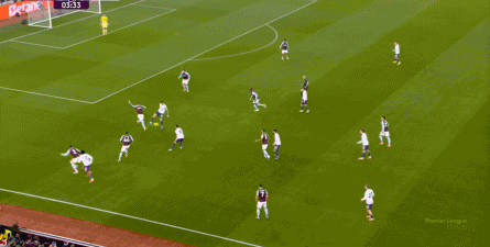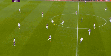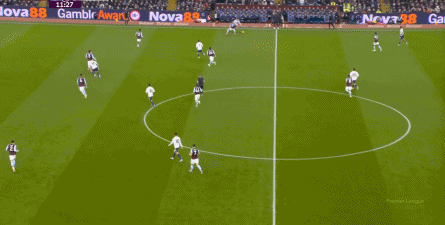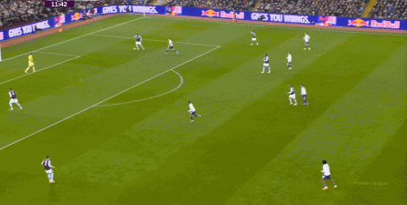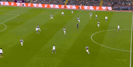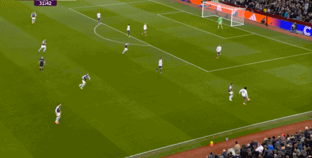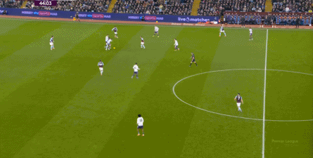 第45分钟,维拉在中场球员完成抄截 ,由来到中路的麦金顶住后场球员线,联系到罗杰斯,然后在一对一中KO 了曼联: