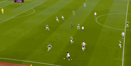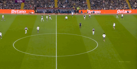 所以,尝到甜头的维拉在赛事 10分钟前后,其实已经把和曼联争夺的战场,从本方半场前移到了中场球员线 区域,这直接指向了曼联的中后场压力会变得更大,但凡事有利便有弊,维拉探出身子,曼联也就有了打身后的空间: