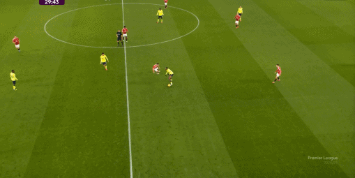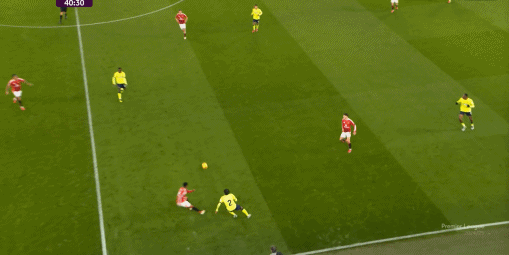 单场被这样的球员在差不多的位置,用顺足四次起脚攻门,约罗的防卫 强度就不必多说了,虽然在第59分钟,曼联一度通过转移球联系边路,让两个翼卫完成了攻门: