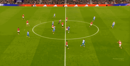 所以,曼联的抢开局效果会更容易消退,一旦阵线不能保持在前,涉及到从后至前的时候,曼联的困难就会上线,而在这之前,曼联已经丢掉了第二球: