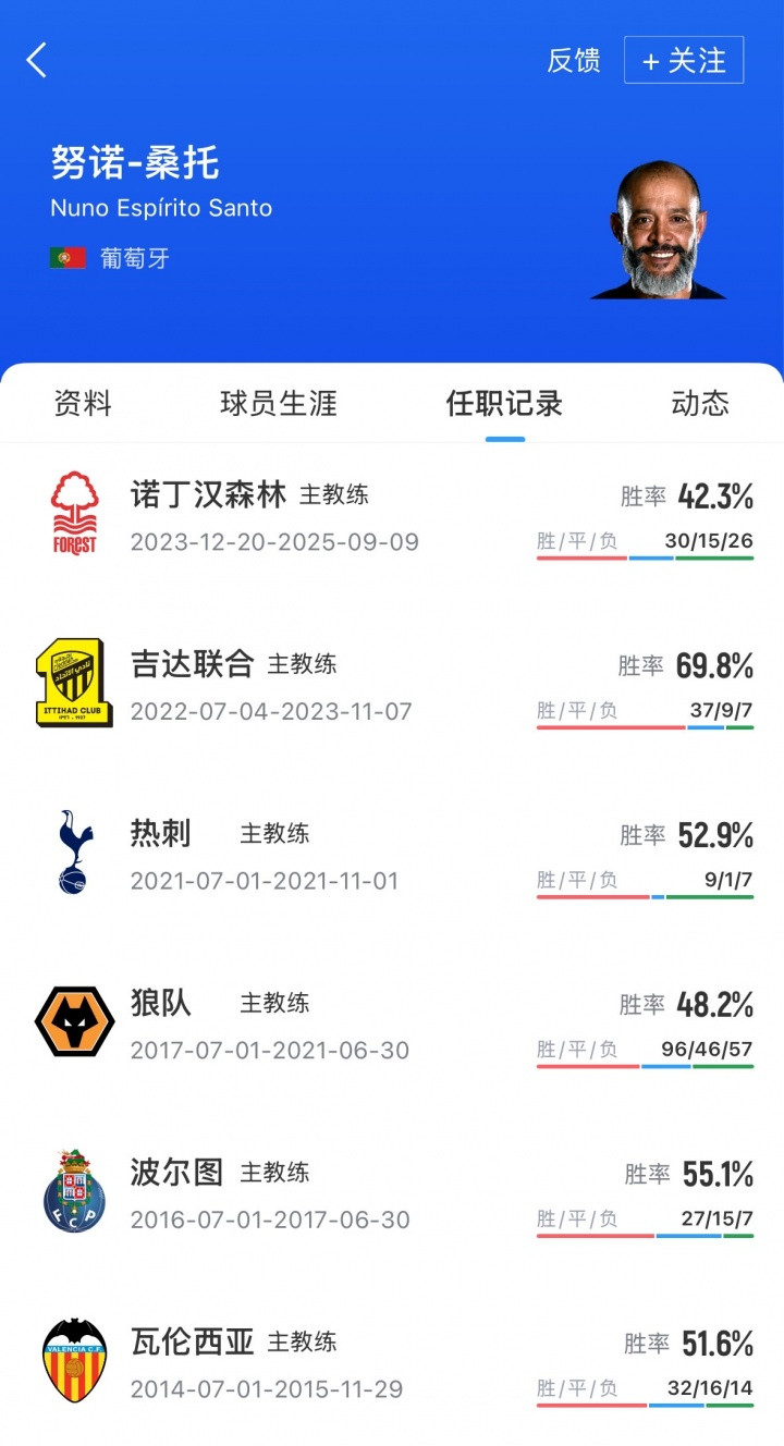 努诺-桑托是原诺丁汉森林主帅,由于和球队高层关系不佳,加上开赛英超3轮4分,努诺在9月初被诺丁汉森林解雇。