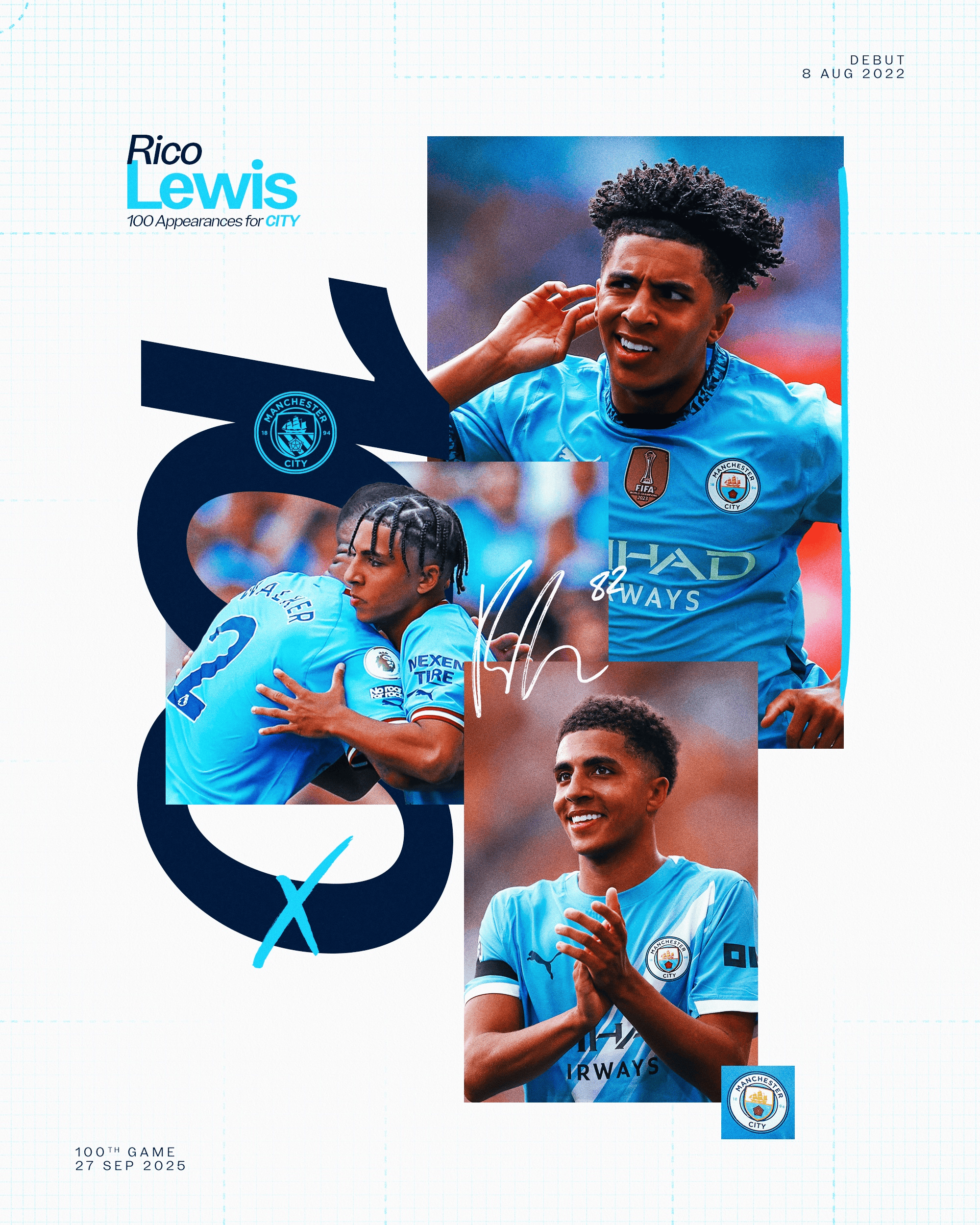 - 里科-刘易斯迎曼城生涯百场里程碑, 曼城官方制作海报送祝福