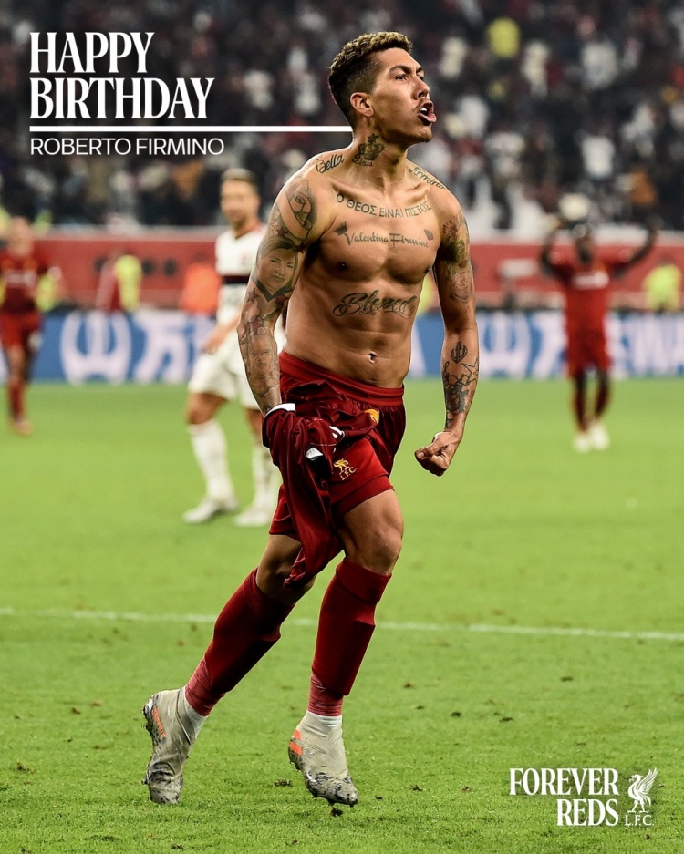 10月2日讯 今天是菲尔米诺的34岁生日,老东家利物浦为他庆生。