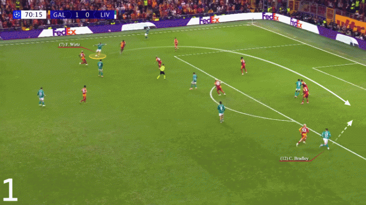 就拿对加拉塔萨雷这场来说,他传出了几脚好球,在球队0比1追赶 的下半场,还创造了利物浦为数不多机会中的两次: