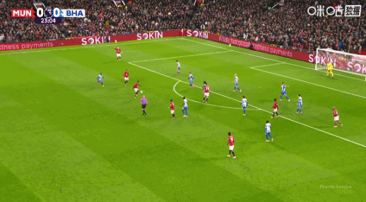 第24分钟,曼联在布莱顿危险区域 前沿打出协作 ,最后卡塞米罗将球给到库尼亚,后者弧顶外兜射远角得手。