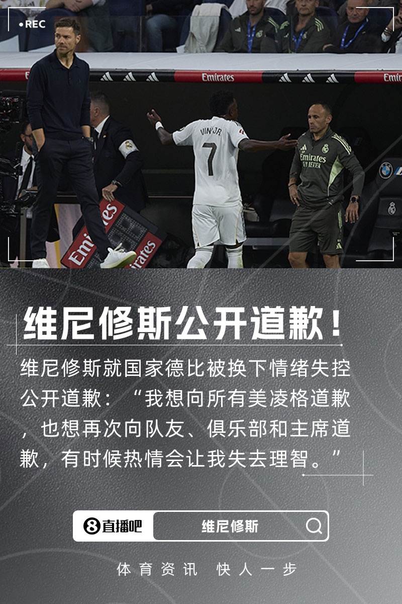 - 六台记者:阿隆索对维尼修斯的道歉感到非常满意