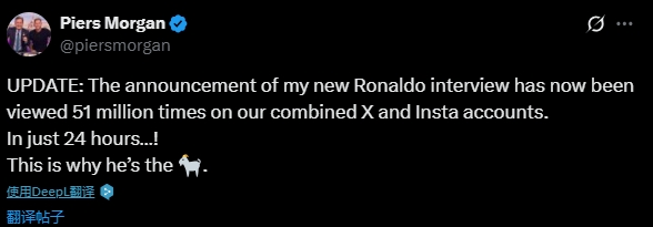 - 摩根:C罗采访预热已有5100万次点击,这就是为什么他是goat