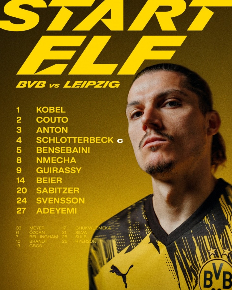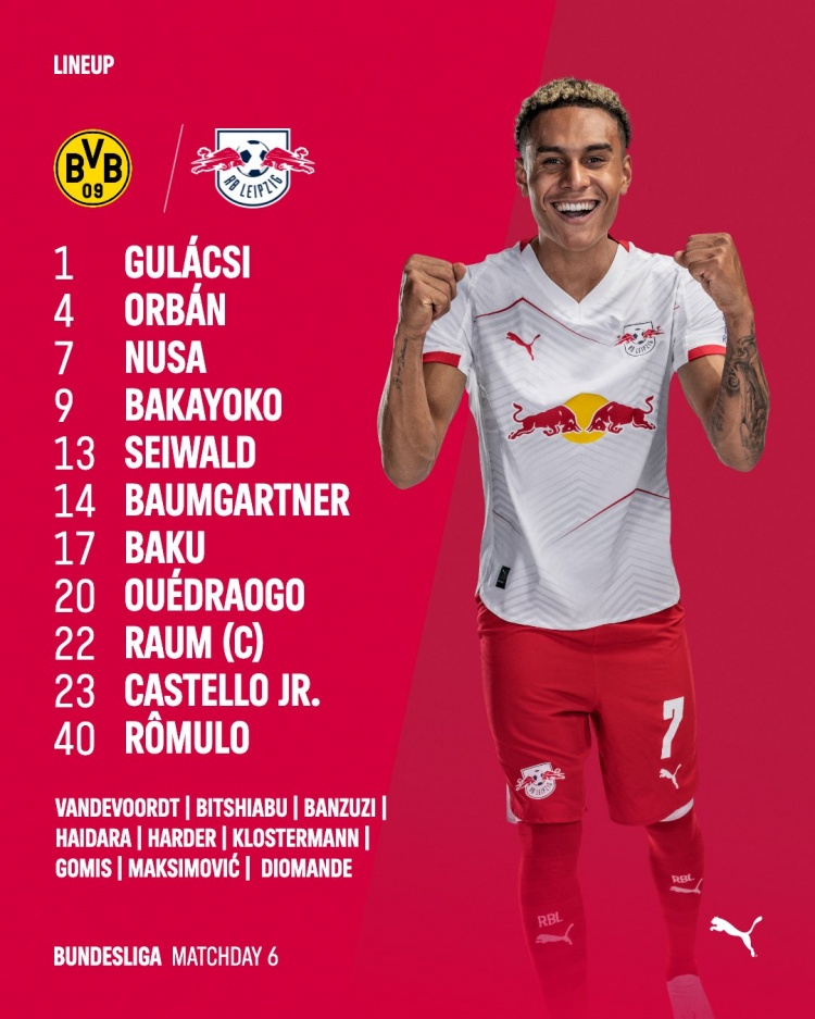 - 多特vs莱比锡杆位:吉拉西、阿德耶米、劳姆、努萨在列